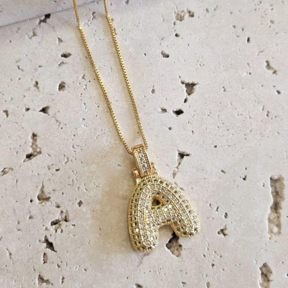 Gargantilha Inicial A Puffer Cravejada 45cm