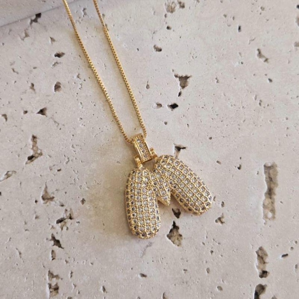 Gargantilha Inicial M Puffer Cravejada 45cm