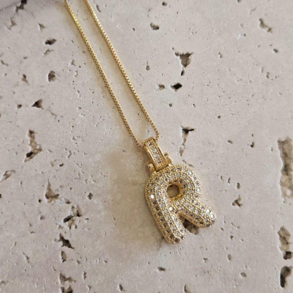 Gargantilha Inicial R Puffer Cravejada 45cm