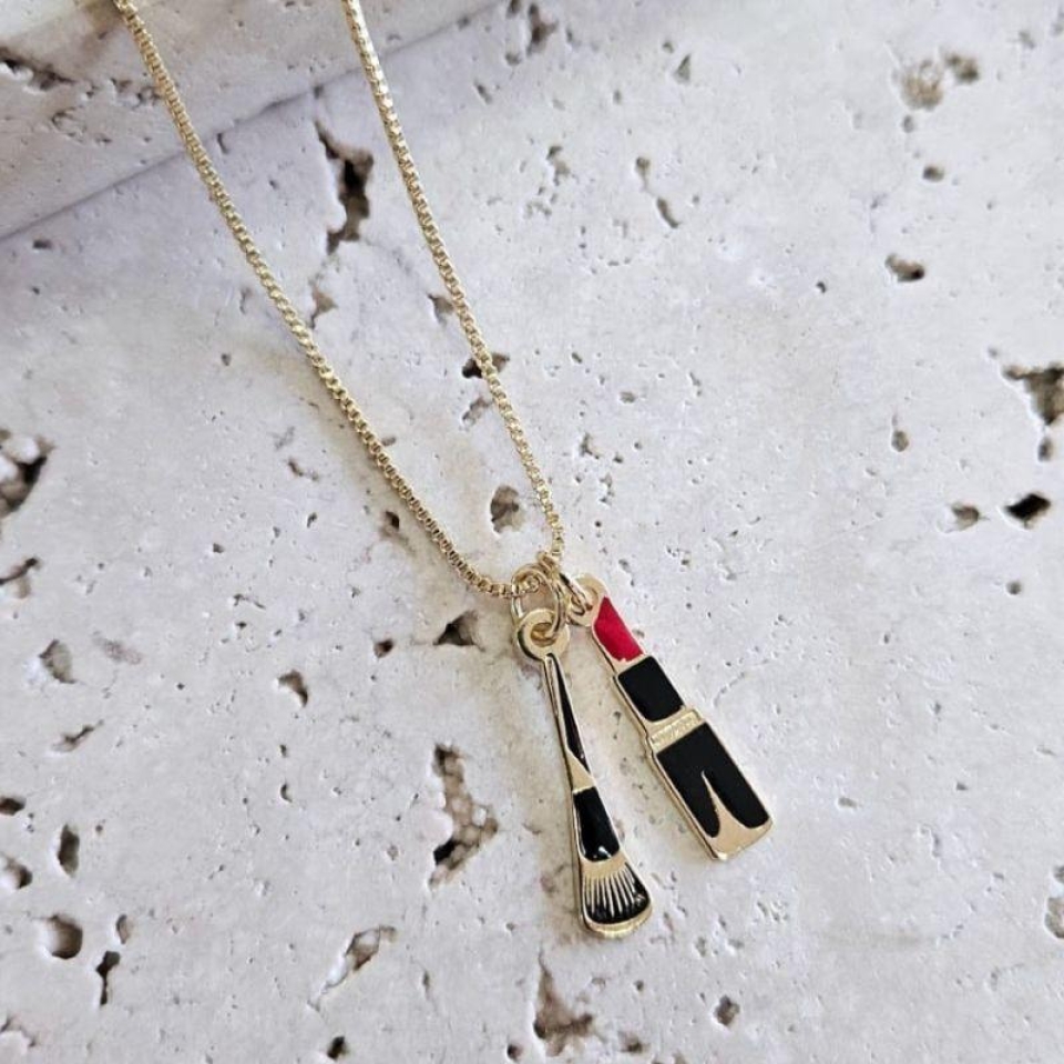FECHARA Gargantilha Maquiagem é perfeita para quem ama o universo da beleza e transforma cada detalhe em arte. Com pingente delicado que representa o mundo da maquiagem, a peça traz charme e significado. O comprimento de 45cm proporciona um caimento leve e elegante no colo.