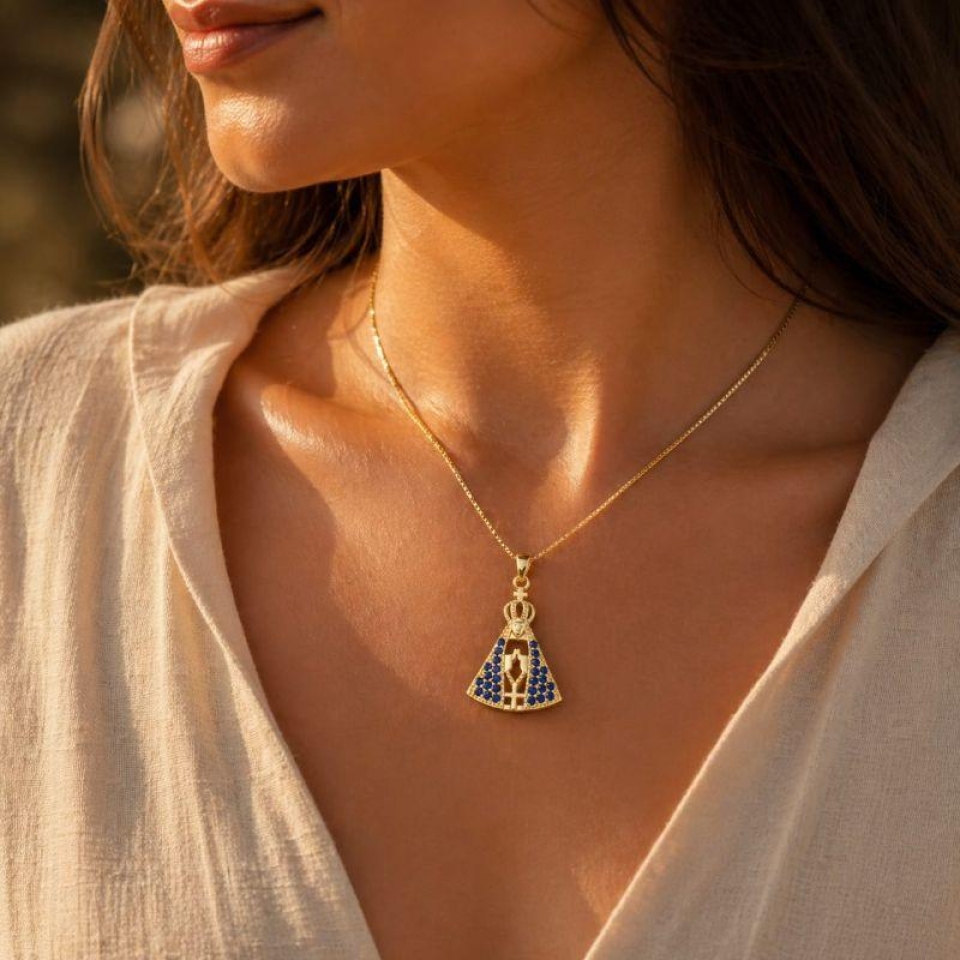 Gargantilha Nossa Senhora Cravejada Azul