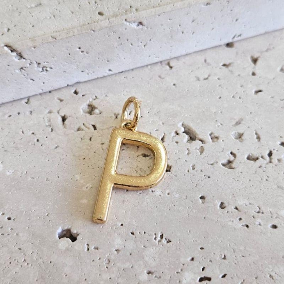 FECHARPingente dourado em formato da letra P, com design minimalista e acabamento levemente acetinado que traz um brilho elegante e sofisticado. Uma peça atemporal, perfeita para quem ama acessórios personalizados e cheios de significado. Ideal para representar seu nome ou homenagear alguém especial com muito estilo.