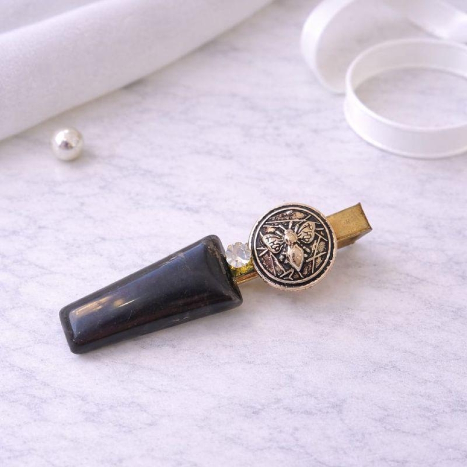O contraste da pedra escura com o acabamento dourado cria um visual marcante e cheio de charme. Ideal para quem ama acessórios diferenciados e com identidade própria.